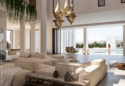 EINE GEBÄUDESKULPTUR, DIE RUHE UND HARMONIE AUSSTRAHLT. EIN ARCHITEKTONISCHES KUNSTWERK, DAS ESPRIT MIT EXKLUSIVITÄT VERBINDET. EIN VILLENENSEMBLE, DAS SICH JEDEN TAG VON SEINER EINMALIGEN UMGEBUNG INSPIRIEREN LÄSST. EIN ATEMBERAUBENDER BLICK AUF DAS ATLASGEBIRGE.